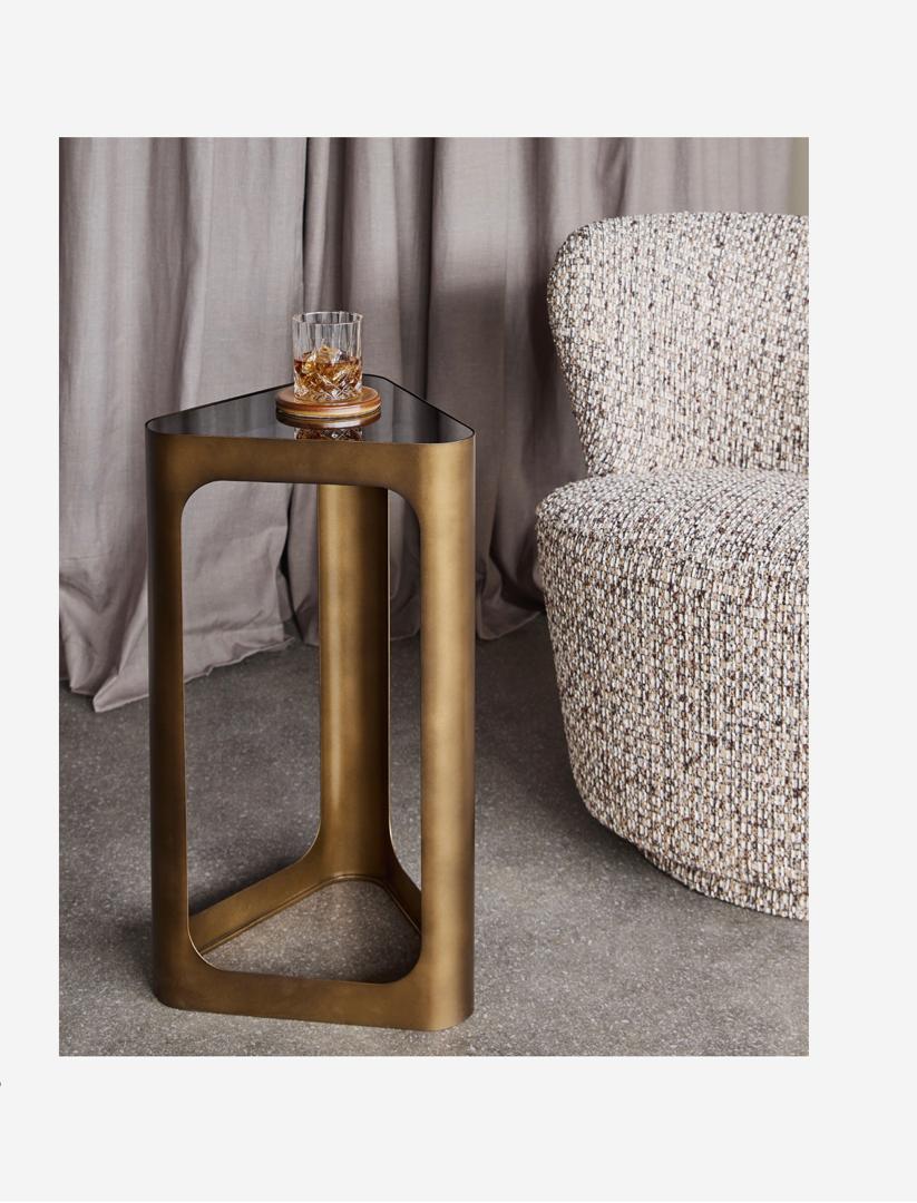 The Thorpe Triangular Accent Table in Black Tinted Glass is a refined statement piece that brings modern sophistication and sculptural form into contemporary interiors. Designed with a distinctive triangular silhouette, this accent table introduces visual interest while maintaining a clean and elegant aesthetic.