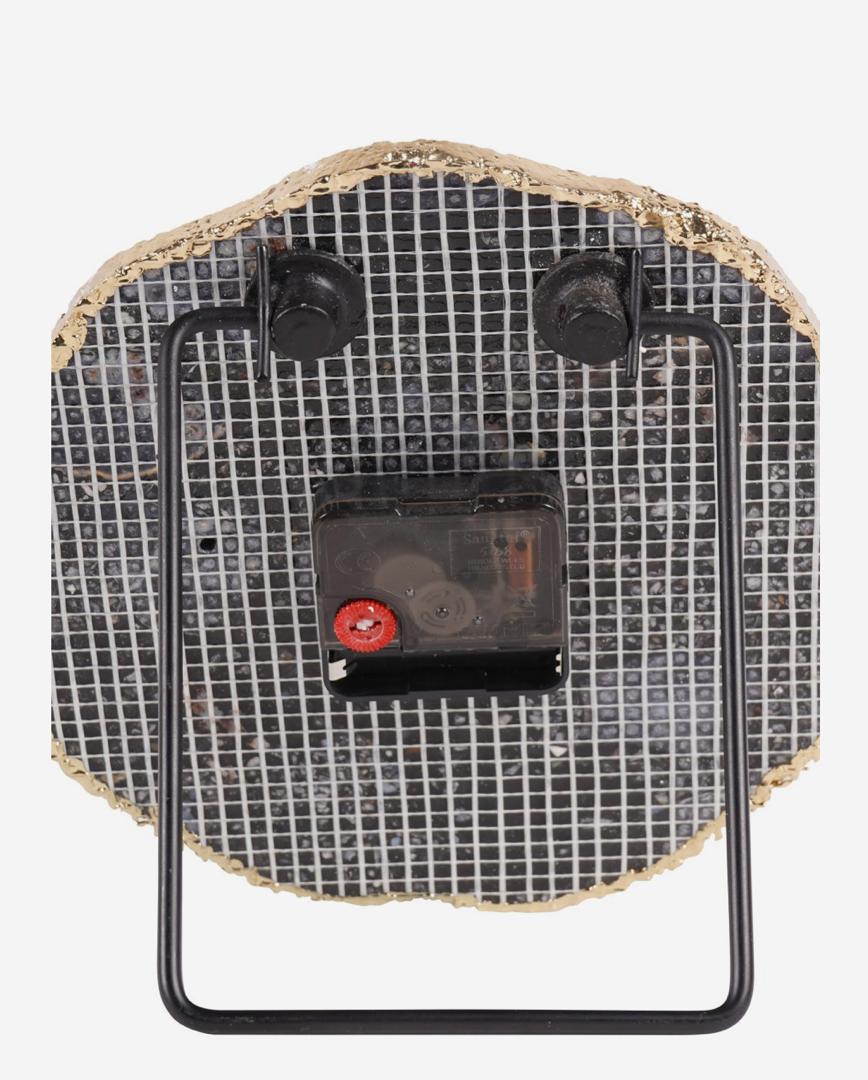 Framed with a matte gold outer edge, the natural smokey agate surface is elegantly enhanced, highlighting the luxurious character of the stone while adding a sophisticated metallic accent. This thoughtful combination of natural material and refined finishing makes the clock a beautiful decorative statement in any interior space.